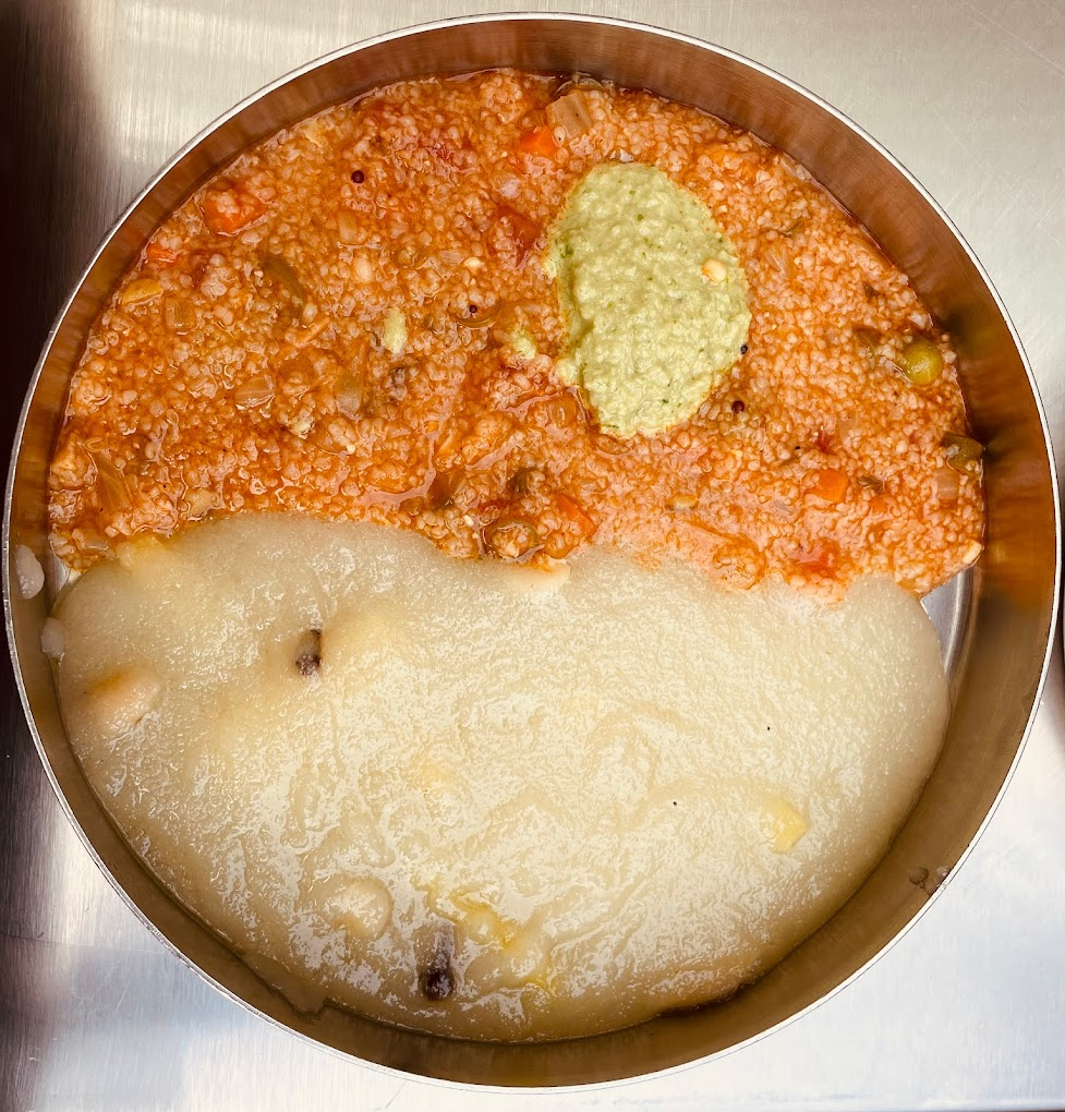 The chow-chow bhath, which is a one-plate meal of the khara bhath and kesari bhath, was delectable. Offerings of ghee were constant in everything, and this was rather novel for me. This was the first time that I tasted the chow-chow bhath in Hyderabad, and was pleased to note that it reminded me of what I have often experienced in my travels across Karnataka.