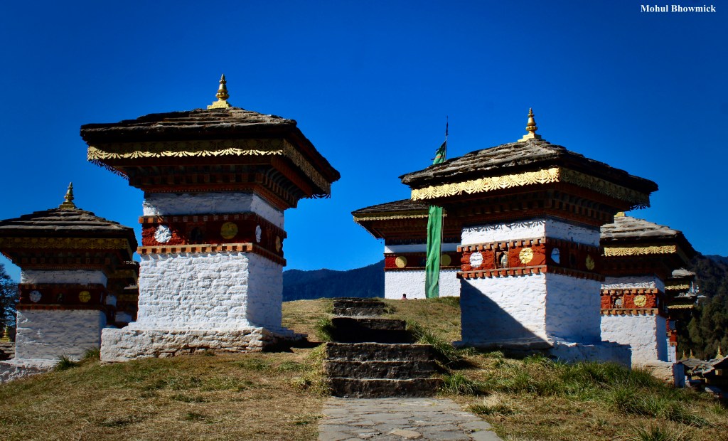 The memorial Chorten in Dochu La pass, the highest motorable pass in Bhutan, lies less than hour outside of Thimphu, and was built by the Queen Mother Ashi Dorji Wangmo Wangchuck praying for the safety of her husband, the King Jigme Singye Wangchuck during the third Duars war in 2003-04.