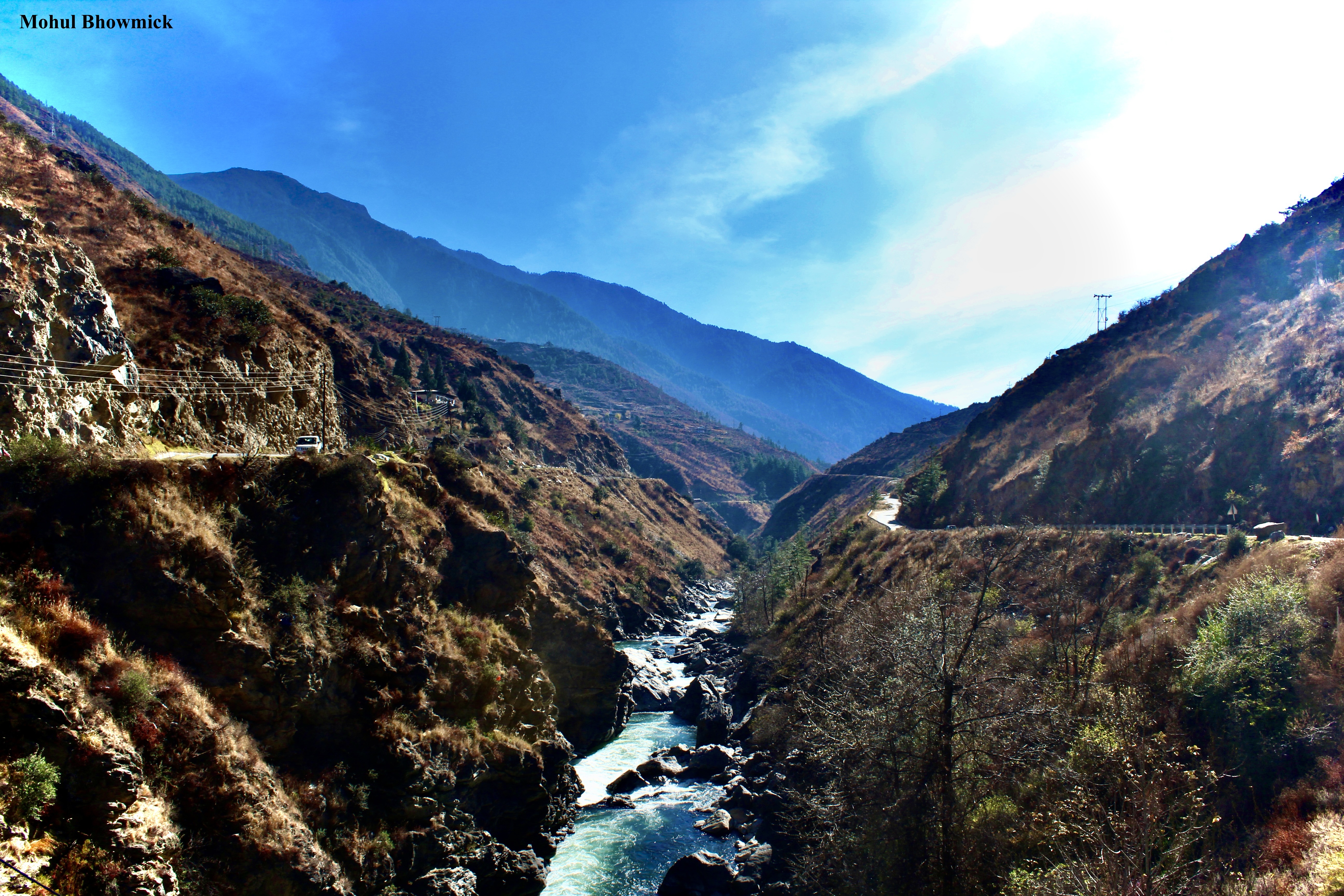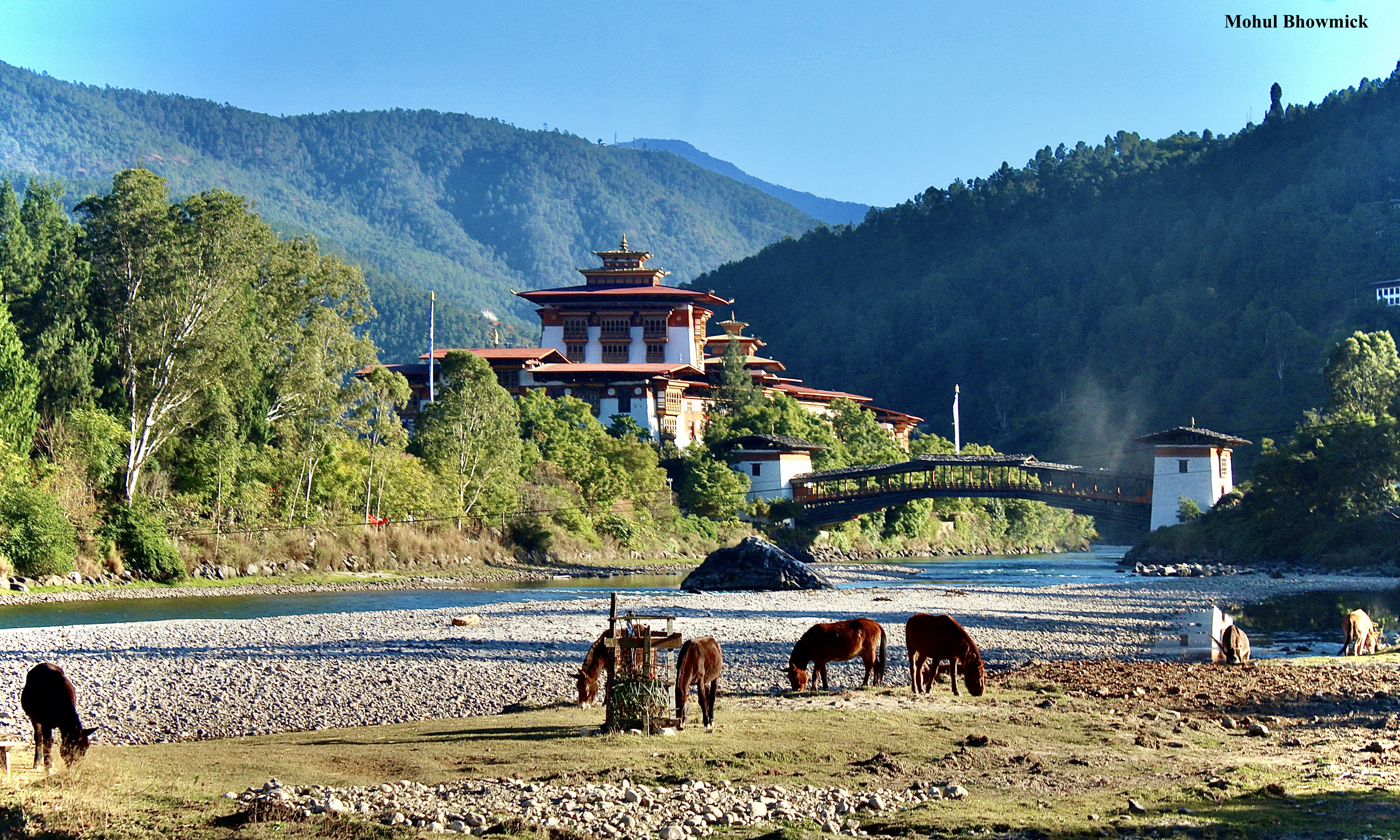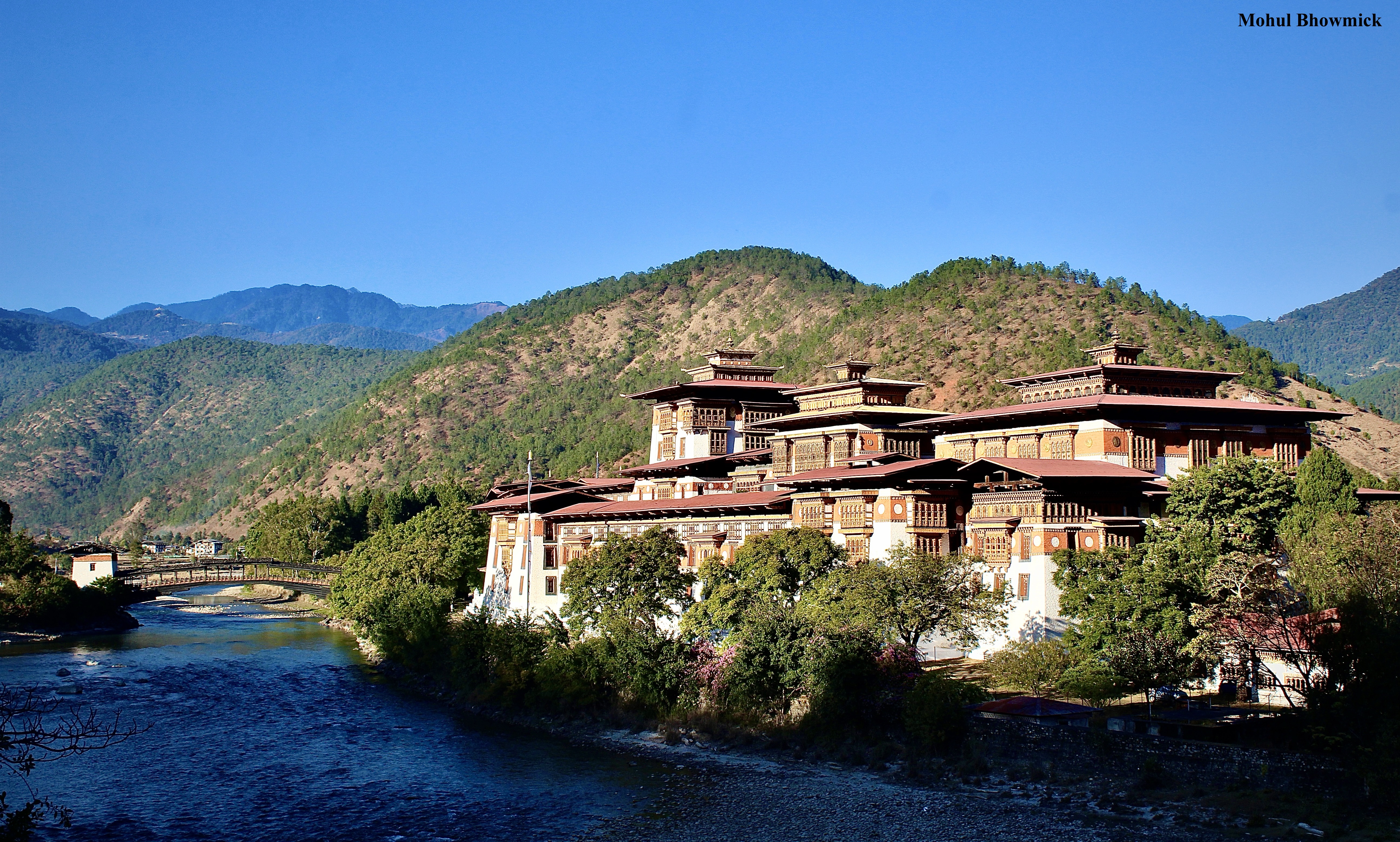 This post is dedicated to the valley of Punakha in central Bhutan, which is dominated by its eponymous dzong. The dzong, or fortress, which also serves as the headquarters of temporal and spiritual power of the district, is an imposing structure made all the more imposing with the gentle Mo Chhu river flowing past.