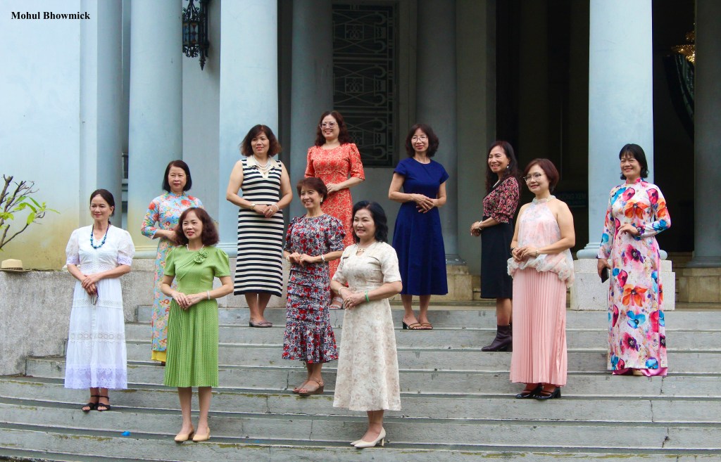 The Catholics of Vietnam are a significant minority in a country that is predominantly Buddhist. Here, their women pose in front of the national museum in Saigon. They are distinguished from the Buddhist Vietnamese in their choice of clothes – they usually discard the traditional aao dais in favour of long dresses.