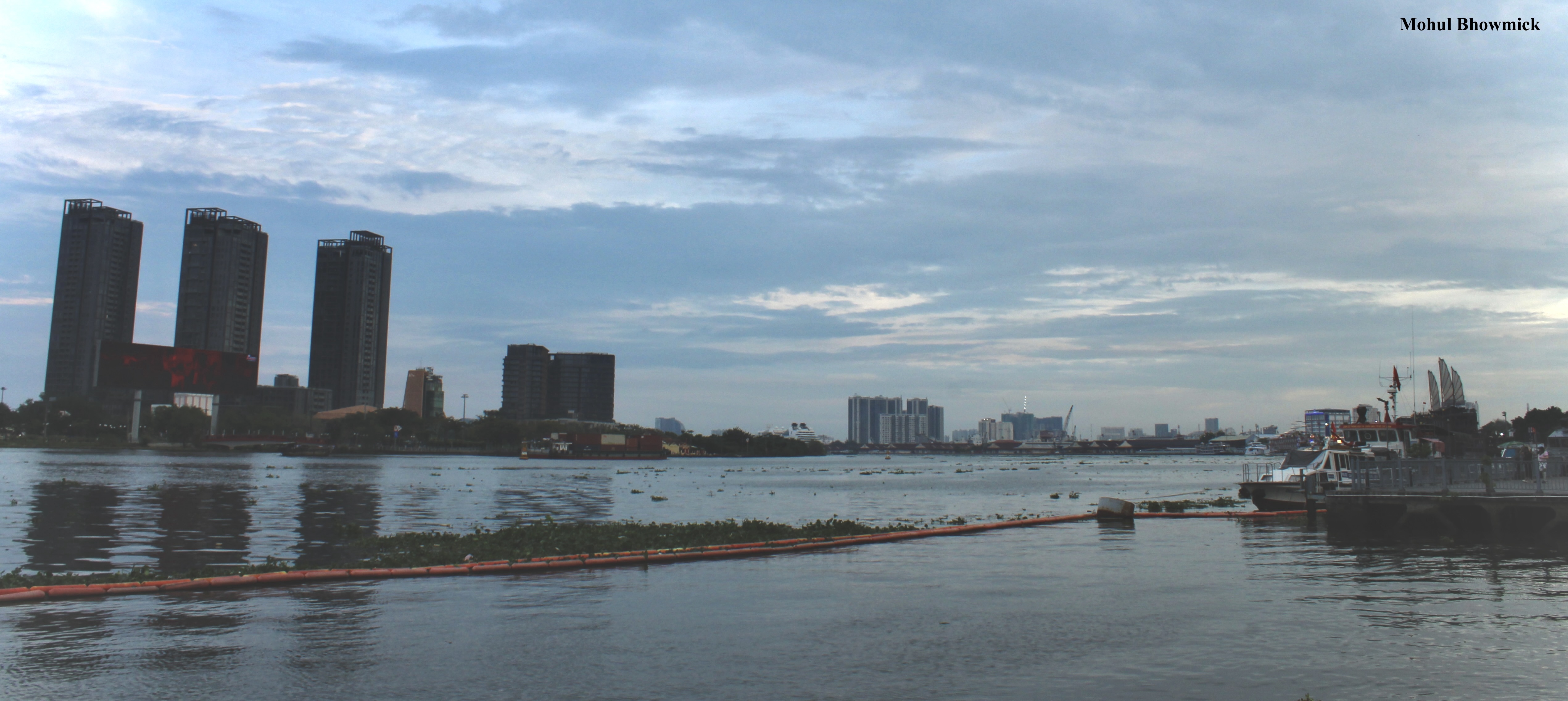 The skyline as seen while looking out over the river Saigon, on the banks of which the city is built.