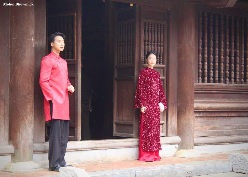 A young Vietnamese couple, doing the rounds of the Temple of Literature before tying the knot, make some time for a photoshoot as well.