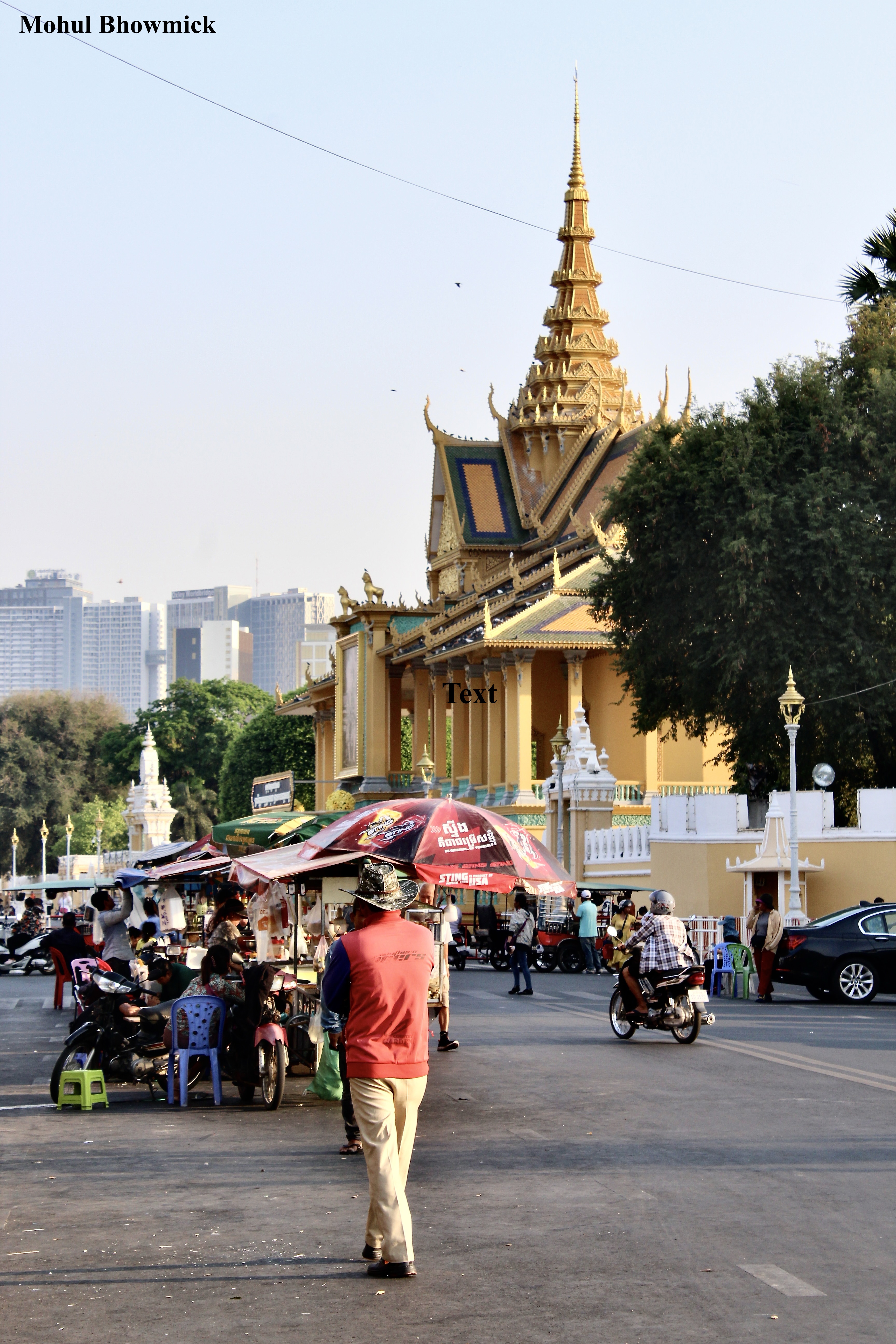 Hawkers ply their trade in front of the royal palace, from where Cambodia’s king Norodom Sihamoni looks on indifferently– he is known to be fond of Czech operas.