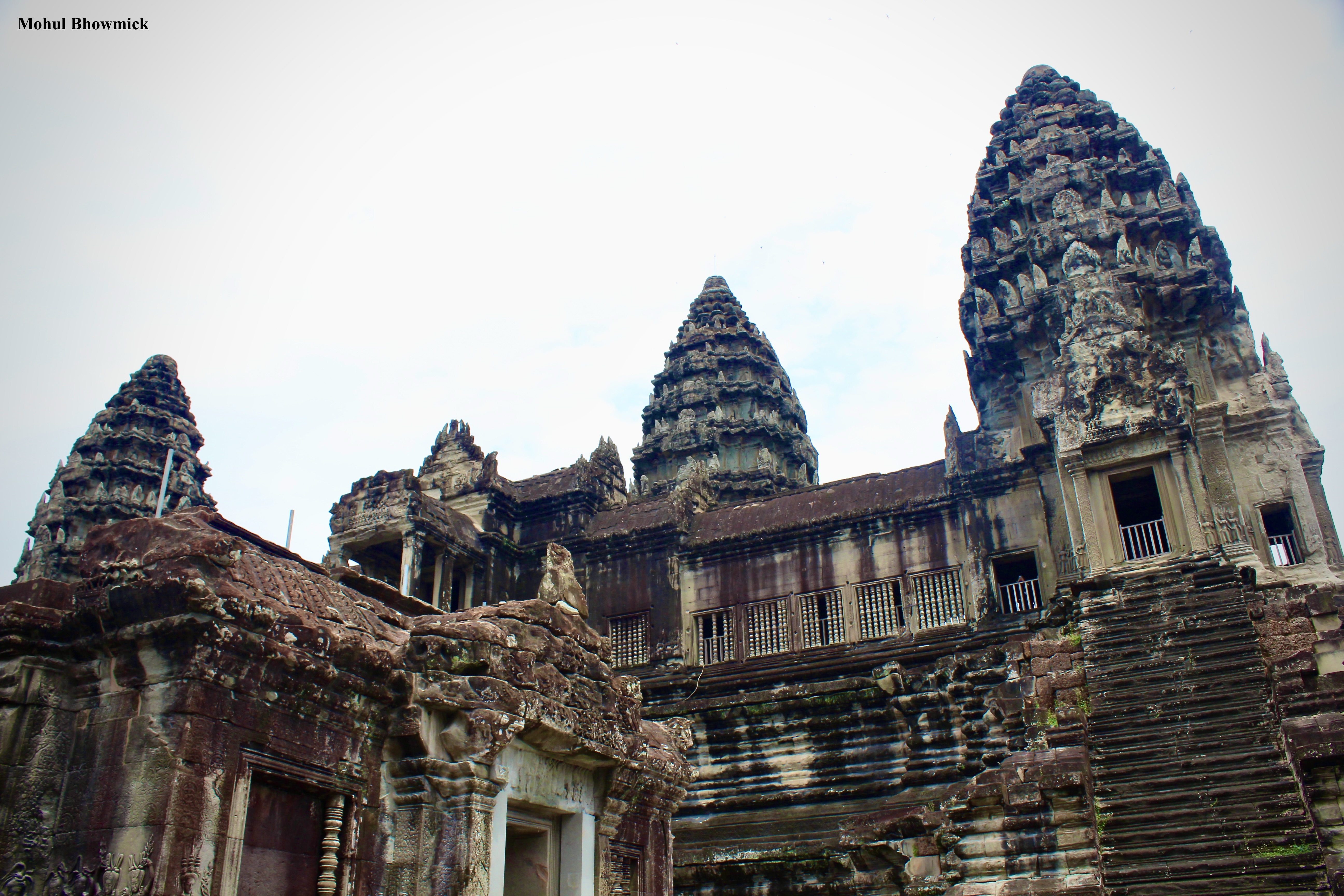 The gopuras of Angkor Wat, shaped as southern Indian Hindu temples, remind me of home.